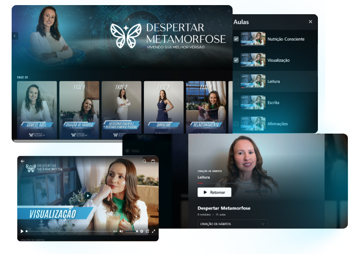 Conteúdos exclusivos com mentores, terapeutas e especialistas que vão potencializar sua transformação.